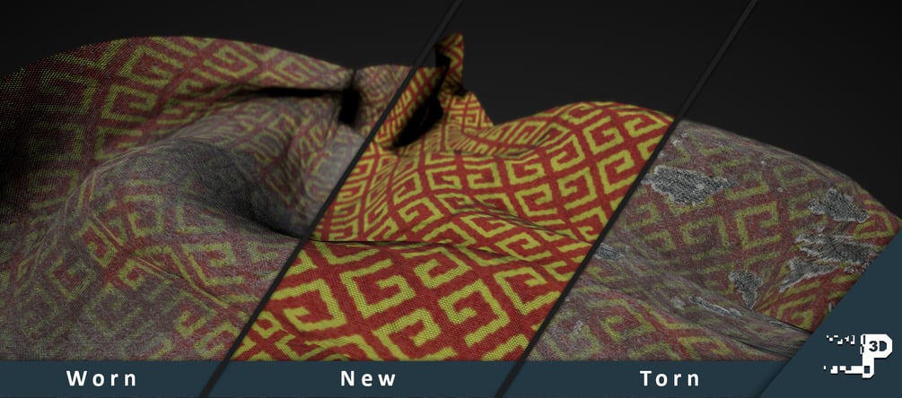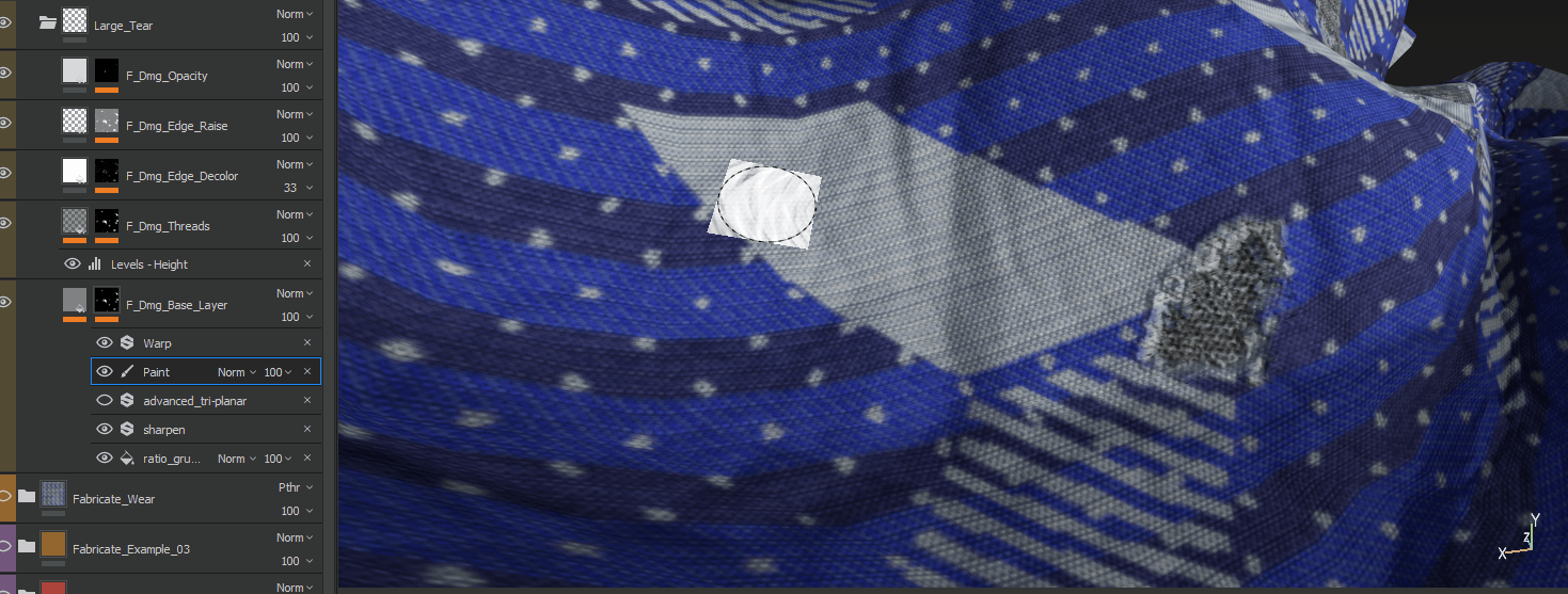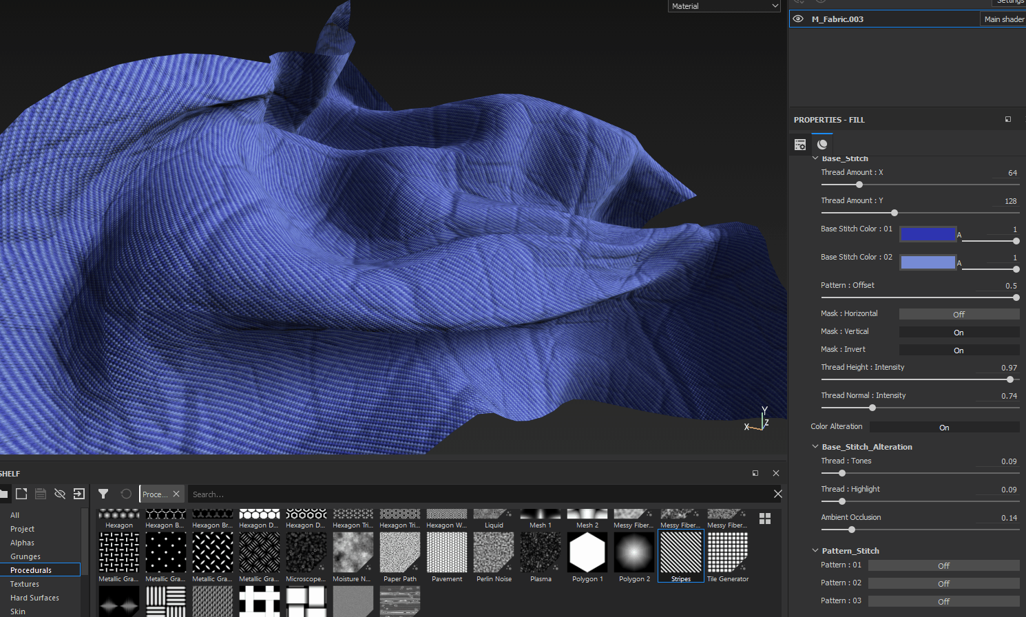 Fabricate is a Substance Painter tool designed for creating quick and iterative fabric designs that allows for custom alpha input to affect threads on an individual level. This is a drag & drop .SBSAR file that also comes with additional extra .SPSM smart materials for 3 example materials, as well as 1 worn and 1 torn preset.